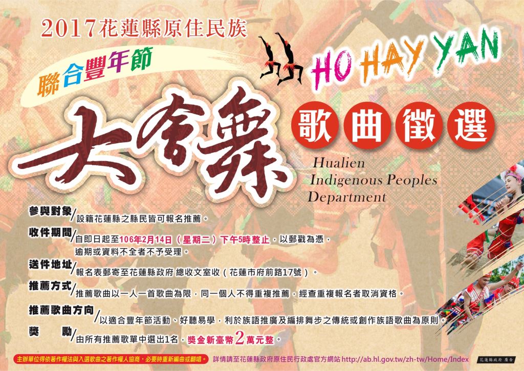 2017花蓮縣原住民族聯合豐年節大會舞歌曲徵選