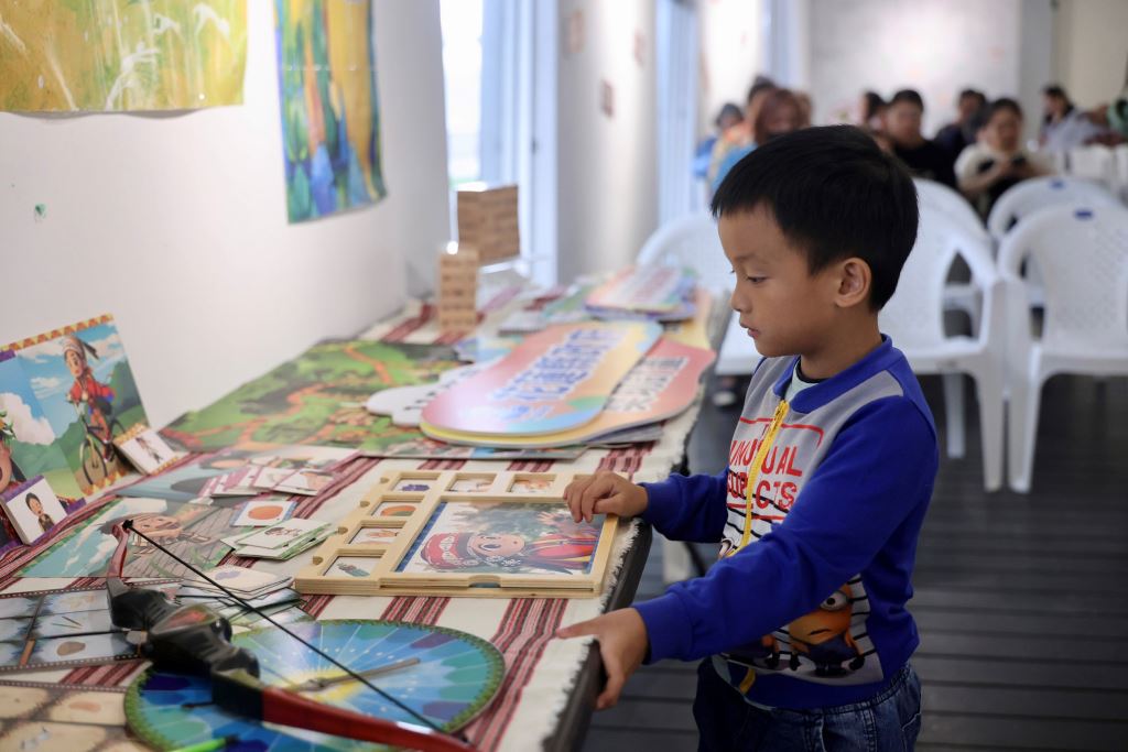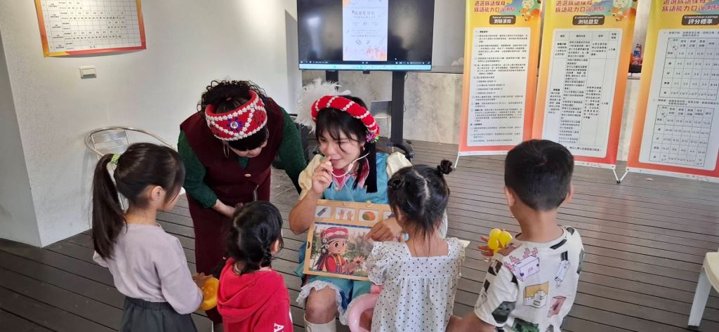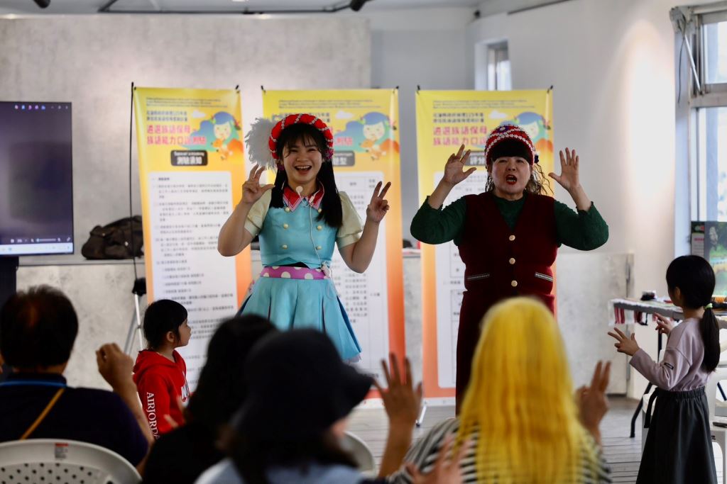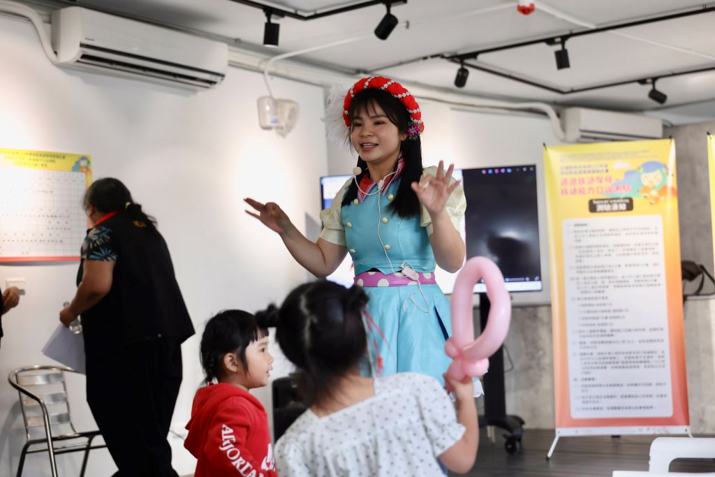 為讓現場具互動文化體驗,以活潑有趣方式吸引孩子有效學習,貼心設置族語教材展示區,包括族語桌遊、繪本等多元學習素材,讓大家實際了解族語教學的應用方式;另規劃親子互動活動,邀請「漢堡姊姊」進行族語故事分享,並搭配氣球創作活動,讓孩子在輕鬆愉快的氛圍中接觸族語,提升學習興趣,親身感受族語融入生活的情境。