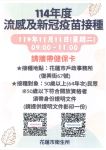 一、花蓮縣花蓮市戶政事務所提供場地聯合花蓮市衛生所辦理114年度流感及新冠疫苗接種服務,活動資訊如下: