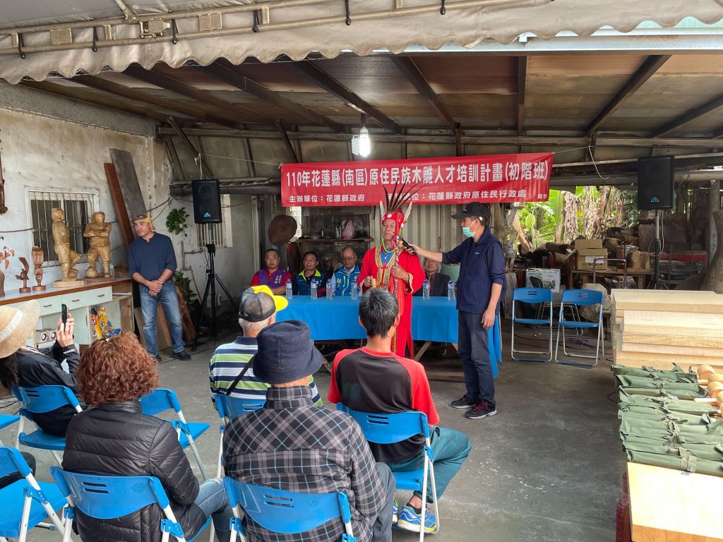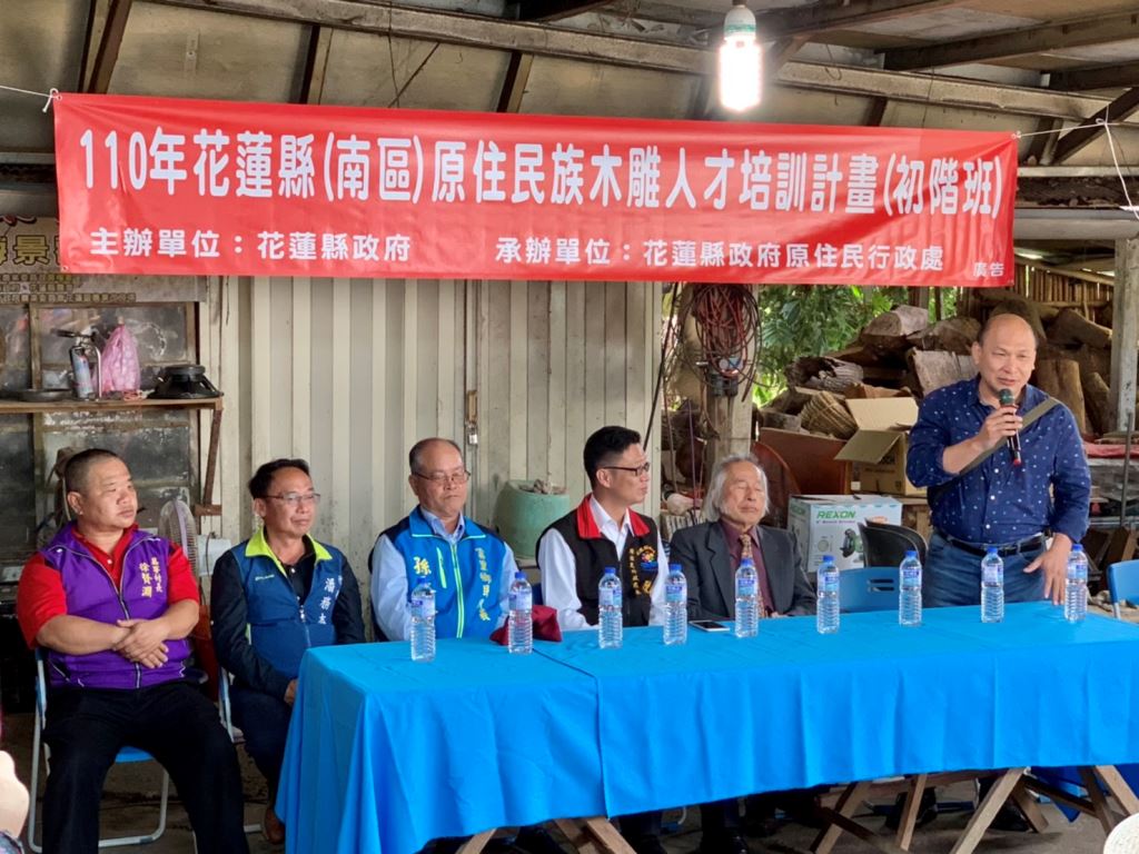 出席開訓活動有富里鄉民代表孫永成與潘務本、萬寧村長俆賢焉,及姆拉丁部落頭目林同助等,原民處更邀請兩位,長期支持花蓮縣人才培育的木雕藝術領域大師,來自彰化縣鹿港鎮的臺灣國寶施鎮洋與苗栗縣三義鄉的楊永在,遠到而來與學員們共同分享與交流,激盪出更多創作與發想空間。