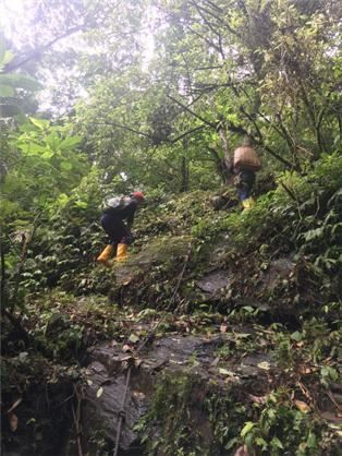 禁伐補償檢測區域因屬原始自然環境,檢測時常常需要攀爬陡峭岩壁才能到達。