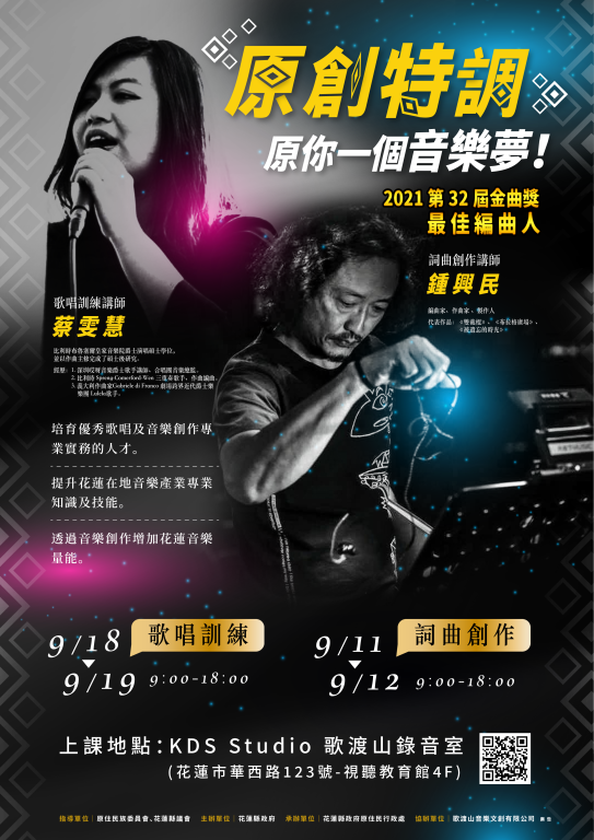 原創特調-110年原住民音樂創作培訓課程,在四天的課程安排,以激發出音樂創作的各種新可能為發想,透過「音樂美感、歌曲賞析、詞曲創作、歌唱技巧核心應用知識」等實作課程,為在地原住民族音樂人找到適合的創作與歌唱方式,推動花蓮在地原住民族音樂人才培育與產業發展。