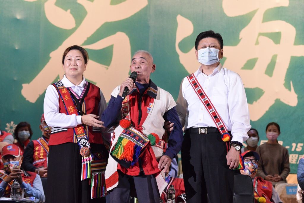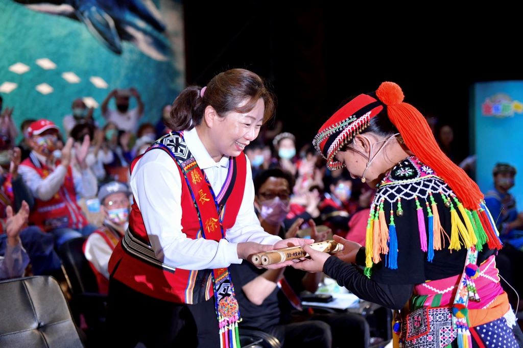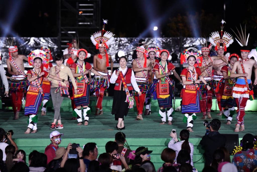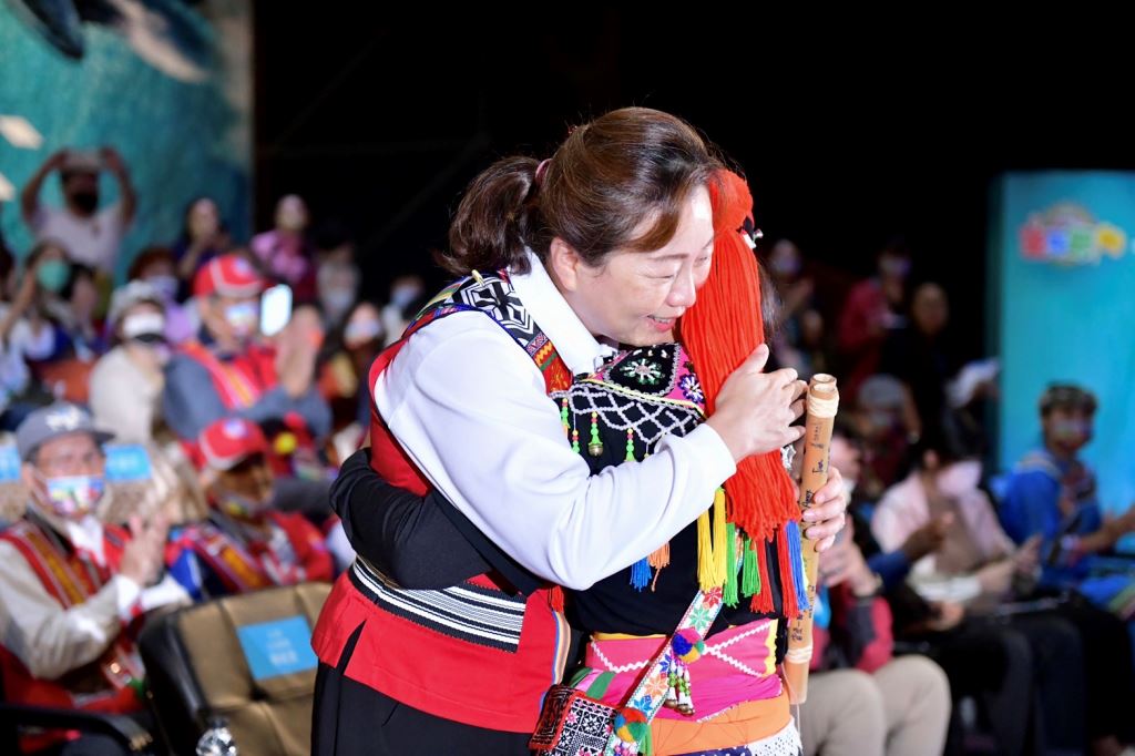接續由縣府原民處長期培育的樂舞團隊阿勒飛斯文化藝術團、屏東縣獅子鄉Supaw青年會、原住民甜心勇士、力美文化藝術團、吉娜魯岸舞蹈團、太平國小、旮亙樂團(花工)及吉安鄉阿美族水美舞蹈團(化仁國中、吉安國中、花蓮高商) 齊力展現精彩豐富的樂舞魅力。旮亙的少多宜老師帶著一位少女鼻笛手,一邊演奏一邊緩步走上主觀禮台,親手將20位鼻笛手簽名的鼻笛致贈給縣長留念。縣長非常感動,擁抱旮亙的少女,並向少多宜老師致謝。