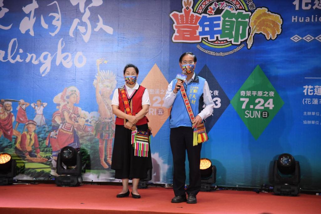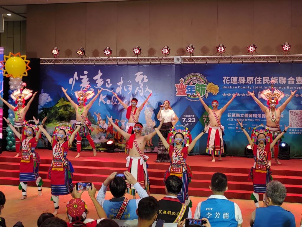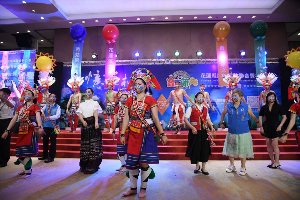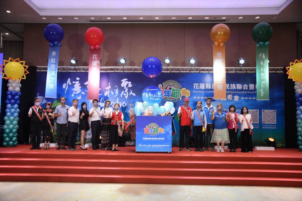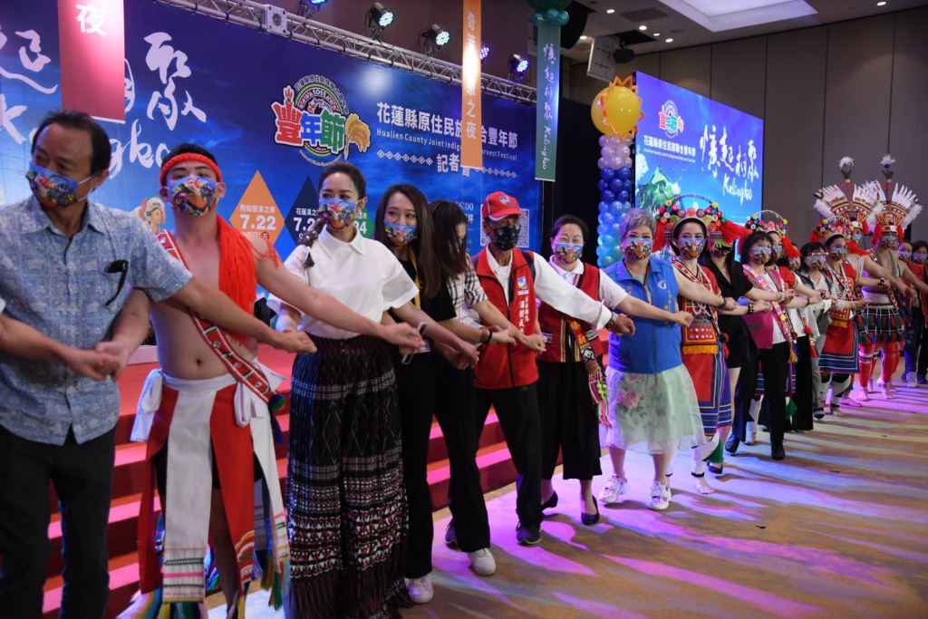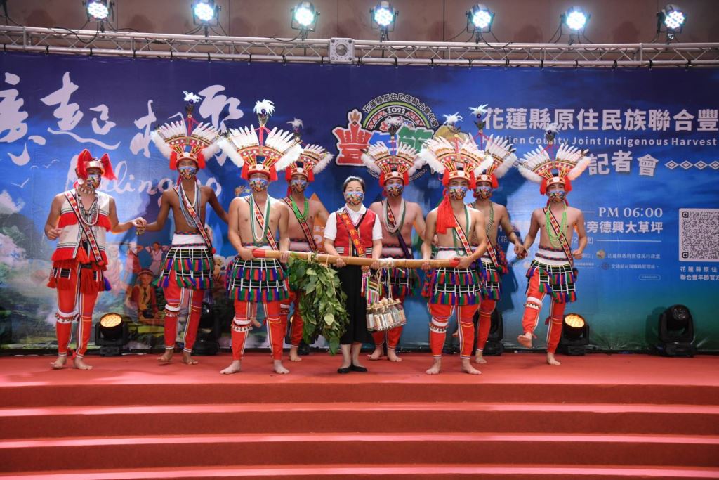 花蓮縣長徐榛蔚身披情人袋親臨現場,記者會一開場帶領花蓮部落頭目及勇士向全國鄉親報信息,今年特別邀請入圍「第33屆金曲獎最佳原住民語歌手獎」的阿美族歌手「舞思愛」擔任大會歌主唱,攜手與今年大會舞優勝團隊「阿多瀾青年」及縣府原住民族樂舞人才培育暨扶植團隊「阿勒飛斯文化藝術團」,於現場展演年度大會舞,歡樂氣氛渲染全場,為花蓮縣原住民族豐年節活動揭開序幕。
