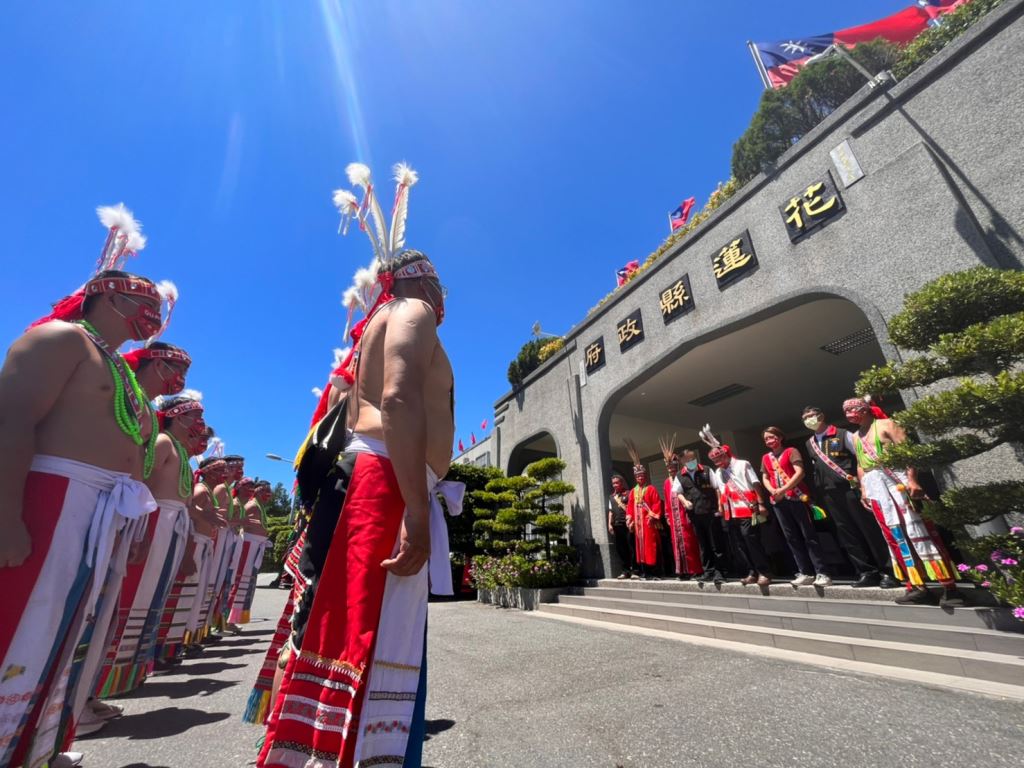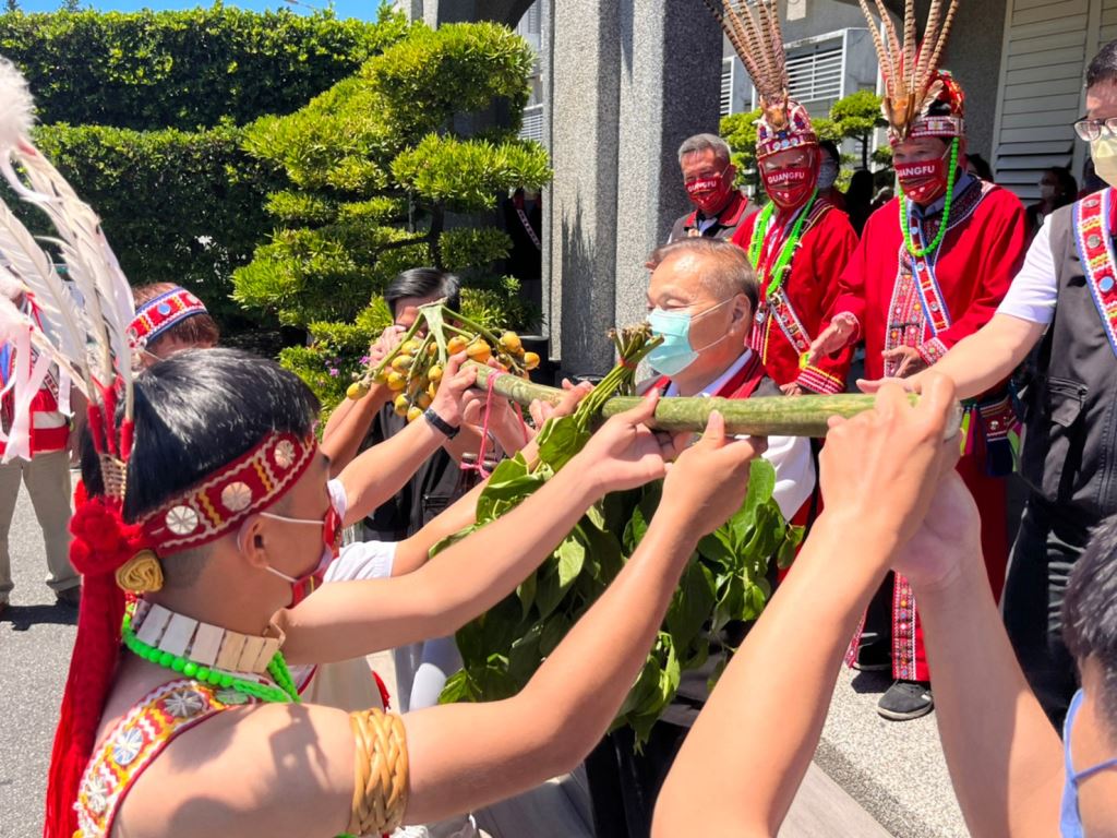 光復鄉馬太鞍年齡階層12日上午到花蓮縣政府報信息(Patakus),族人感謝上天賜福,副縣長顏新章代表縣長親自接下小米、檳榔、祭酒等信物,也熱情邀請大家參加光復鄉馬太鞍部落豐年祭(Ilisin)。