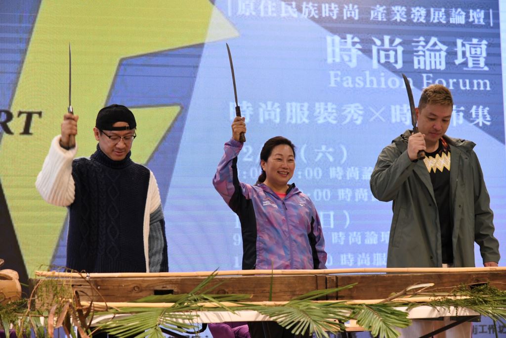 眾所矚目的全臺首屆原住民族時尚產業發展論壇,今(10)日於花蓮縣婦幼親創園區開幕了!由花蓮縣長徐榛蔚、知名原民時尚潮牌花生騷品牌主理人林德拉,知名設計師沙布喇·安德烈等三人,以原住民獵人披荊斬棘開路的象徵儀式進行活動剪綵,揭開美好的序幕。