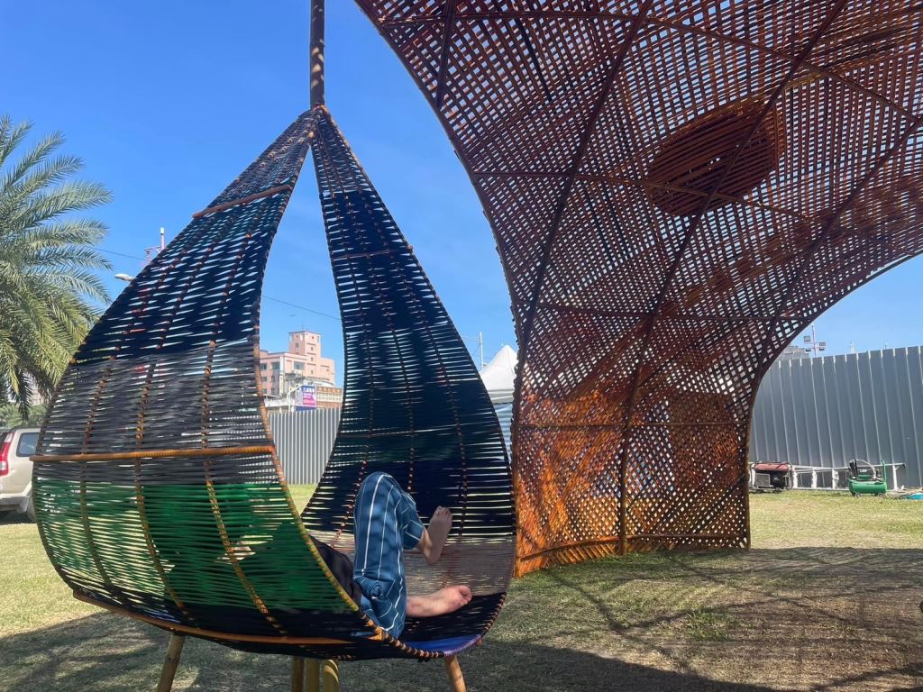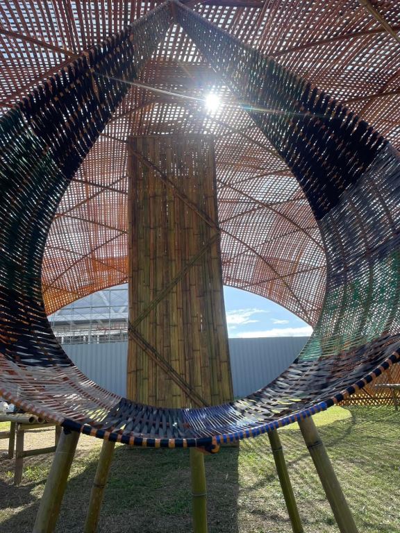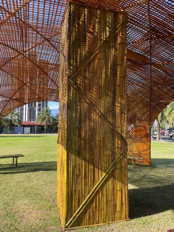 藝術家陳勇昌的這項作品以天然的竹子編織而成,除了視覺的震撼,也呈現藝術與環境的融合,隨著時間與陽光的起落,自然的呈現作品不同的樣貌與魅力,從鮮綠的竹子顏色隨著陽光與溫度的改變,漸漸的轉變成土黃色,進入打魯岸內,更能感受到家一般的溫暖以及天然竹子香氣的溫潤。