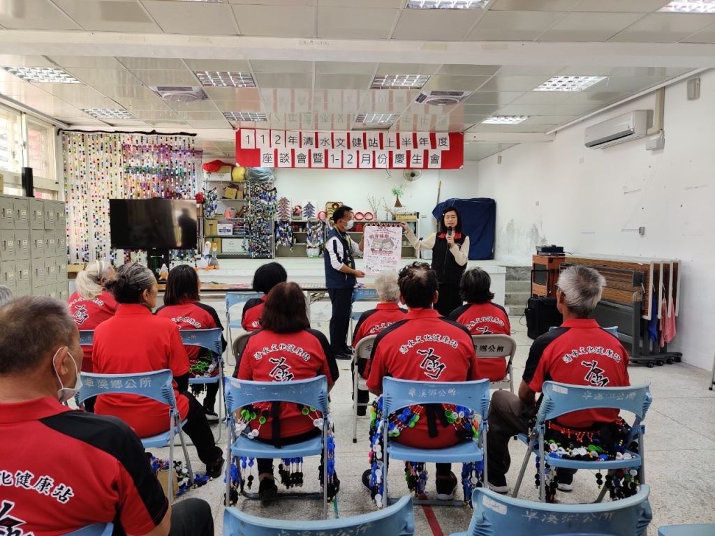 卓溪鄉清水部落文化健康站於2月24日辦理慶生活動,縣府原民處同仁與富里鄉衛生所林大慶主任均到場祝賀歡度生日的長輩們。擁有阿美族血統及牙醫師身分的林主任,特別為長者們解說居家衛生保健常識和膝關節退化的自我復健與保養方式。主任說:部落的醫療資源普遍不足,因此更需要加強自我照護知識,以延緩失能。原民處同仁同時也向長輩們宣導假牙補助措施和電動車使用的安全事項。