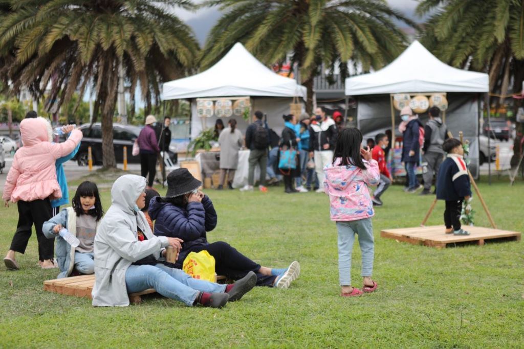 市集活動位在東大門夜市旁陽光電城草皮,從下午2點到5點,許多遊客很早就到現場逛攤位,無論是「台灣原住民慢食廚師聯盟」的「耕香園手作文創坊」及「樂舞詩烘培手作坊」、原藝百工「那都蘭工作室」、「多加巧藝工坊」的手作文創,「花蓮原生好物農場」及頭等獎的「一斗夢咖啡農園」,每攤都呈現了最在地最優質的美食與工藝。