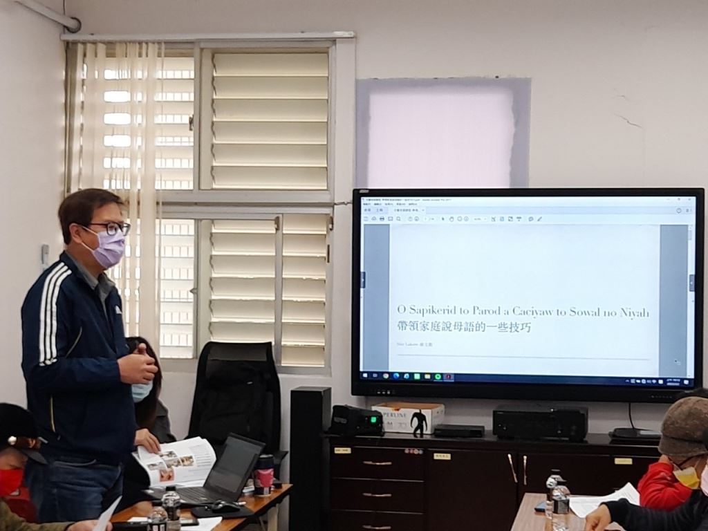 花蓮縣政府於3月2日原住民族保母家訪員工作會議,邀請台灣阿美族語言永續發展學會理事長Sifo Lakaw鍾文觀到場分享,特別以推動家庭說母語實務經驗分享,讓第一線服務的家訪員熟悉帶領家庭方法與技巧。Sifo說:母語必須從家庭做起,家長是關鍵,牽繫下一代認同及學習動力,家訪員更是重要推手,促進更多孩子開口說母語。