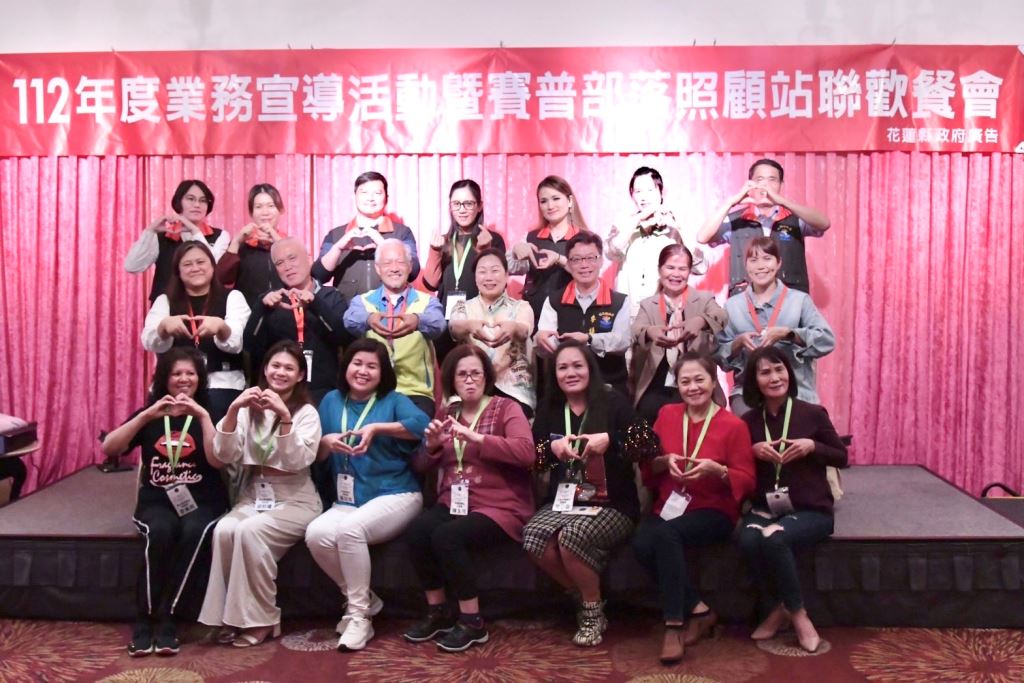 花蓮縣政府今(16)日與19名賽普照顧站的工作夥伴,於花蓮翰品酒店辦理「112年度花蓮縣賽普部落照顧站業務宣導暨交流活動」,希藉此提出照護轉型願景與業務上的心得分享,花蓮縣長徐榛蔚親臨給予賽普站工作人員最高肯定及鼓勵,現場一片溫馨融洽。