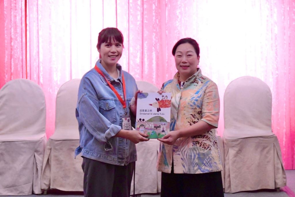 固祿賽普照顧站督導陳菱筑回贈由該賽普站長者與慈濟科技大學學生共同創作的2本族語繪本,分別是《固魯夏之戀》和《我繪uyas》(Truku族語歌謠本),其中《固魯夏之戀》收錄了站內長者繪畫作品,2本作品實為族語保存與振興的美好結晶,縣長深受感動,向投入創作的賽普站長者表達最高的感謝與肯定。「以書相贈,以文會友」之景令徐縣長有感而發,提到花蓮縣政府所編撰的書籍已經逐步進入「中、英、日、韓」四語並行的階段,期許承載原住民族傳統文化之美的出版品也能躍向國際,讓世界從書香中感受臺灣原住民族最純粹的生命印記。