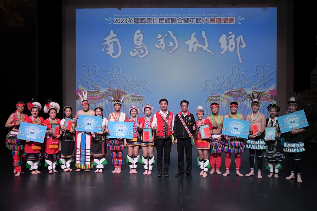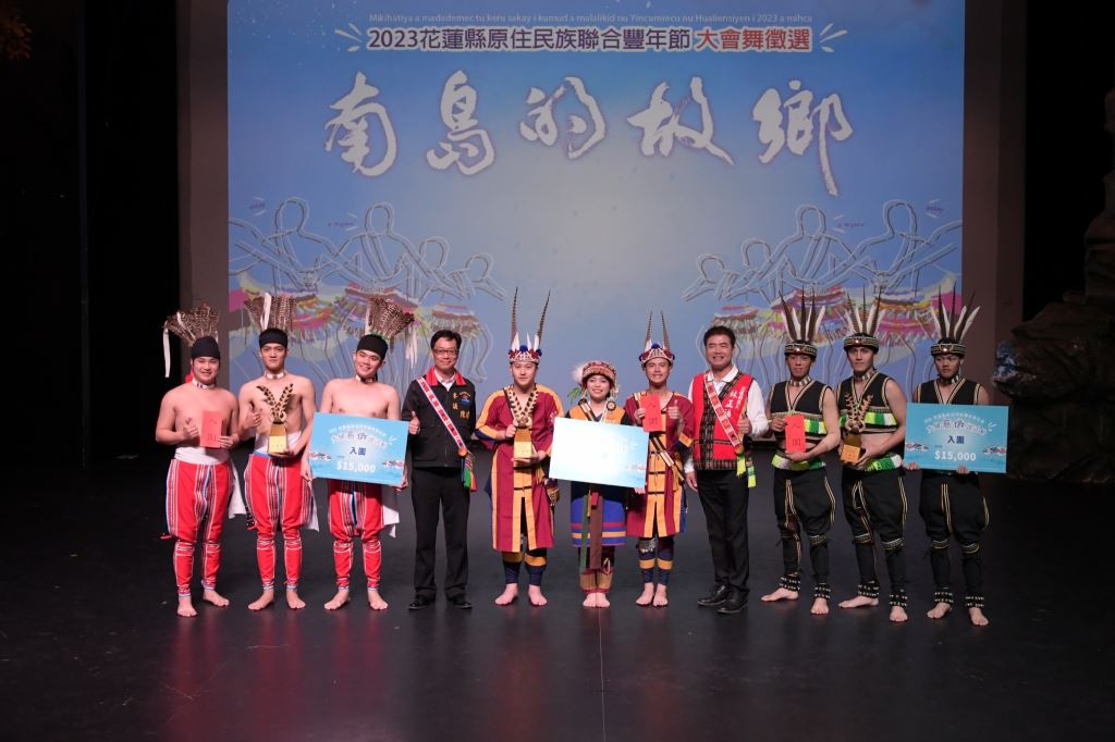 2023花蓮縣原住民族聯合豐年節大會舞競賽,今(18)日於花蓮縣臺灣原住民族文化館進行第二階段決賽,經過2小時競舞,比賽成績出爐,入圍前三名為「海原樂舞劇坊HYASDT、力美文化藝術團、阿多瀾青年」。三隊同場PK後,最終由「海原樂舞劇坊HYASDT」脫穎而出,勇奪「年度大會舞」。