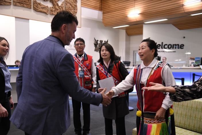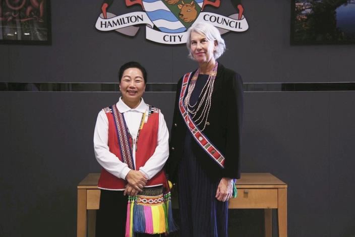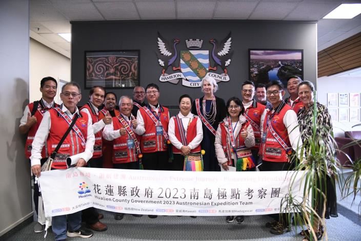 花蓮縣長徐榛蔚自昨(7/12)日起率團赴南島國家進行為期八日的考察參訪,今(13)日前往紐西蘭第四大城市漢米爾頓市(Hamilton City)會見市長Paula Southgate(保拉˙索斯蓋特)及其團隊,雙方進行原住民族文化、資產維護、永續發展及經濟產業等多面向議題進行交流,讓同屬南島語系的花蓮與紐西蘭有更深入的交流與認識。