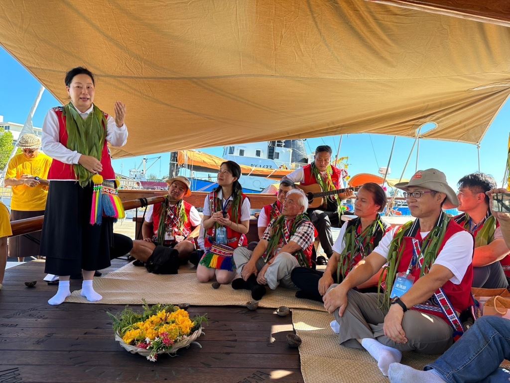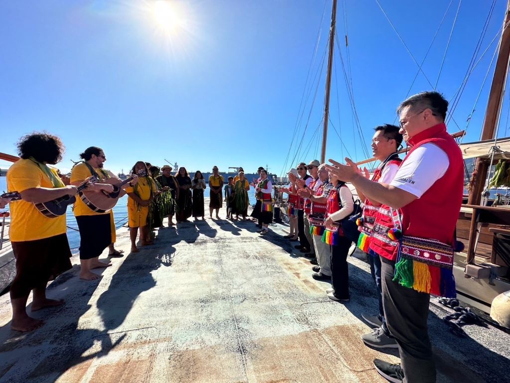 花蓮縣長徐榛蔚致詞提到,很榮幸也很高興能夠在尊貴的傳統帆船上,以神聖的儀式與航海組織的夥伴們會面,締結實質友好關係,也很感謝這一切精細的安排與款待。徐縣長說,人的身體有75%都是水,地球也有75%都是海洋,顯現水是生命的泉源,更是地球連結的臍帶,再次感佩法菲特航海組織對於海洋文化及航海傳統的堅持,而在遠古時代台灣子民曾駐足大溪地,現在我們誠摯歡迎大家駕駛著這艘帆船順著黑潮洋流找到台灣、回到美麗的花蓮。