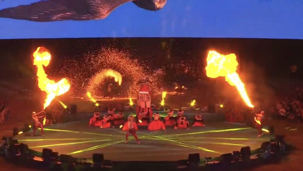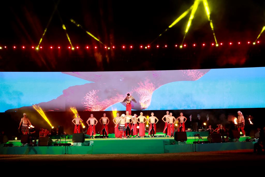 「勇士之心:雄鷹與飛魚之歌」的表演除了加入多媒體互動的元素外,更結合來自花蓮Origin起源劇團的光火演出,以花蓮原住民族獨具特色的語言與文化為基底,結合火舞的熾熱與美麗,編創「奇萊平原之夜」的壓軸演出,火焰在不同的文化間流動與傳承,繼續撰寫屬於每個奇萊平原下各族群文化的火焰之舞。現場觀眾彷彿置身故事的情節中,火舞與現代科技巧妙的結合呈現出獨特的視覺效果,引發觀眾陣陣驚艷的歡呼聲!原住民族樂舞被重新詮釋,在欣賞舞碼的同時也能從中汲取南島民族對土地的力量、勇氣與感恩。