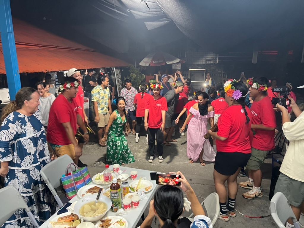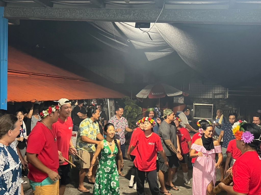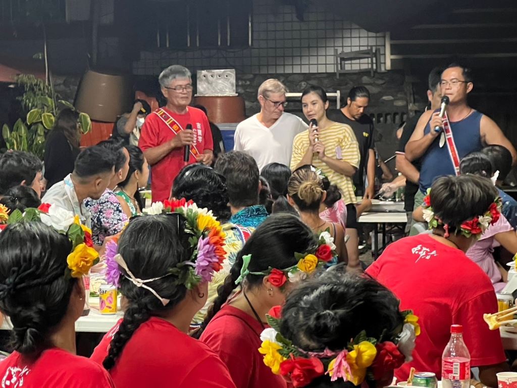 此外,花蓮縣政府也特別精心準備生日蛋糕,為大溪地代表團成員Terii慶生。大溪地代表團、部落族人及原舞者團員們以不同族語輪番演唱生日快樂歌,為他祝福。在美食與樂舞歌聲的交織下,部落的夜晚更顯得溫馨動人,也讓今夜的花蓮在大溪地代表團團員的內心留下了一個難忘而美好的回憶。