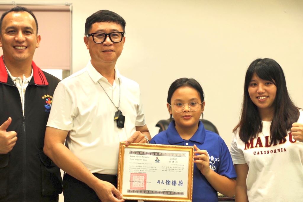 原民處督固撒耘處長於行程結束後,代表徐榛蔚縣長頒贈了表揚狀,並且勉勵尤莉·基魯同學未來回來擔任真正的處長,同時他也感謝全程陪同的沈祐瑄老師,和萬榮國小蘇連西校長的協助。