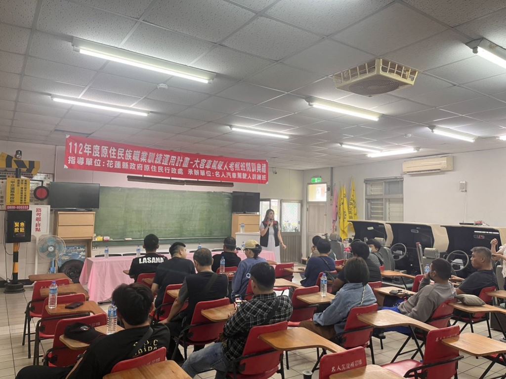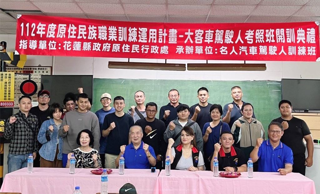 花蓮縣政府獲原住民族委員會補助辦理「112年原住民族職業訓練運用計畫-原住民大客車駕駛人培訓班」,10月14日(星期六)於名人駕訓班舉辦開訓典禮。原住民行政處感謝名人駕訓班董事長邱肇坤提供優良教學場地與專業教練,邱泰錚副主任則祝福學員全數都能順利通過考照。