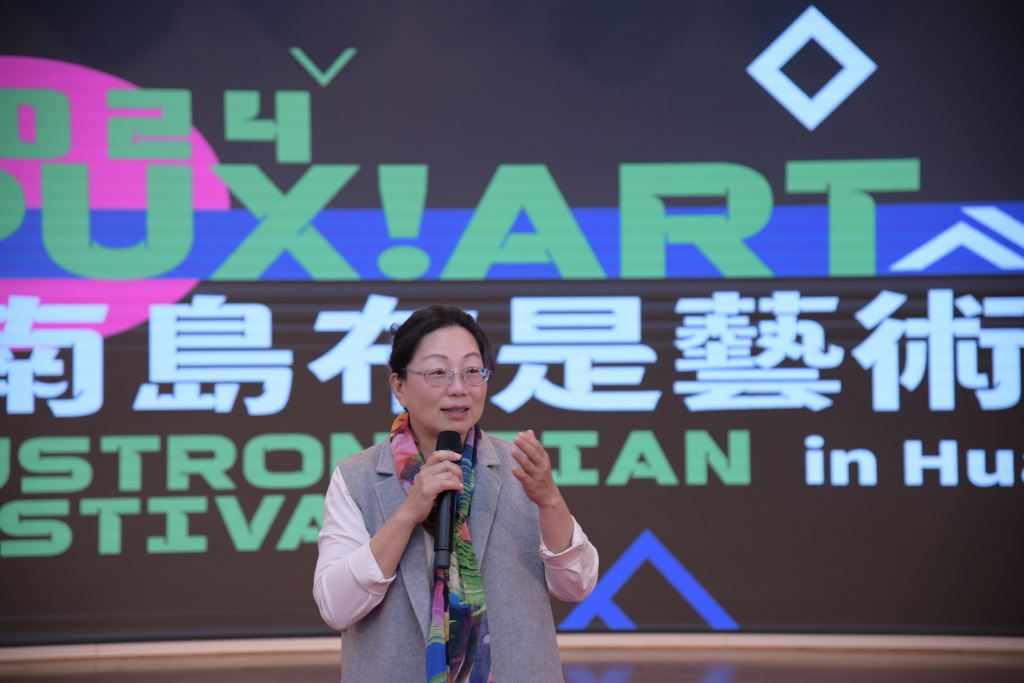 縣長徐榛蔚致詞指出,太平洋南島布是藝術節不僅是視覺、音樂、美食的饗宴,更是一場文化交流的盛會,展現花蓮的古老底蘊與創新時尚,讓花蓮走向世界、讓世界看見花蓮。近年來花蓮的藝術人才在國際嶄露頭角,為臺灣爭光,花蓮縣政府更舉辦聯合豐年節等活動,與紐西蘭、大溪地展開文化交流,今年更邀請夏威夷的南島兄弟姊妹回到南島的故鄉,展現花蓮越來越精彩的面貌。