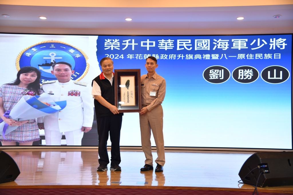 為慶祝一年一度原住民族日,本月份升旗典禮上亦特別頒獎予二位優秀原住民縣民,包含榮升中華民國海軍131艦隊艦隊長劉勝山少將,以及,榮獲今年第35屆金曲最佳原住民女歌手獎的原住民天后舞思愛Usay Kawlu。