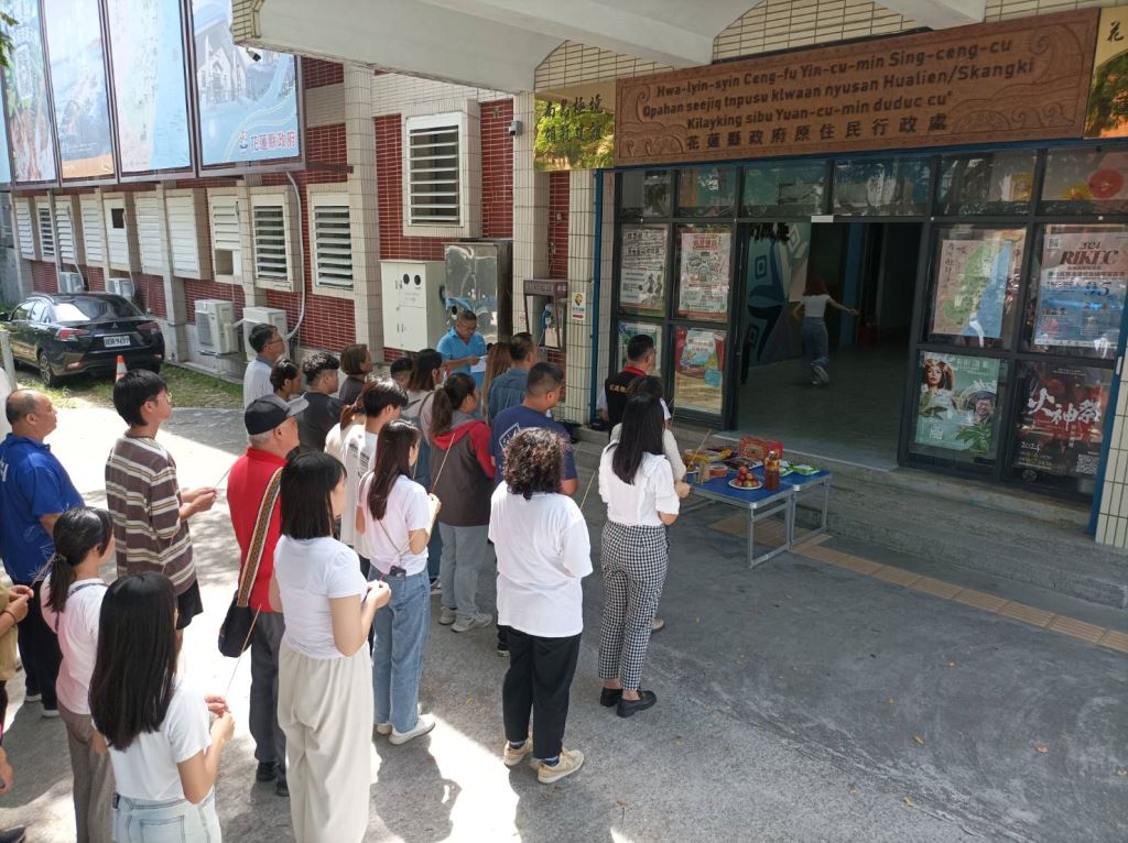 花蓮縣政府原住民行政處約7成員工具有原住民族身份,在公務繁忙之餘也不忘記參加屬於自己部落的歲時祭儀。但原民處仍有3成非原住民的員工,且大社會民間習俗也早已深入人心。為了祈求平安,原民處仍遵從社會習俗於中元節前後祭拜「地基主」。21日下午擺設地基主最愛的雞腿、象徵吉利的奇異果、平安的蘋果以及紅色喜氣的祭品,由督固•撒耘處長帶領同仁手持清香,共同感謝地基主的保佑及庇護,原民處在歷經強震與強颱,辦公大樓皆無重大損害,同仁能夠迅速回到工作崗位,支持並陪伴族人度過難關。同時,也祈求未來原民處在辦理各項業務都能順順利利、推展活動出入平平安安,全體同仁身體健健康康。
