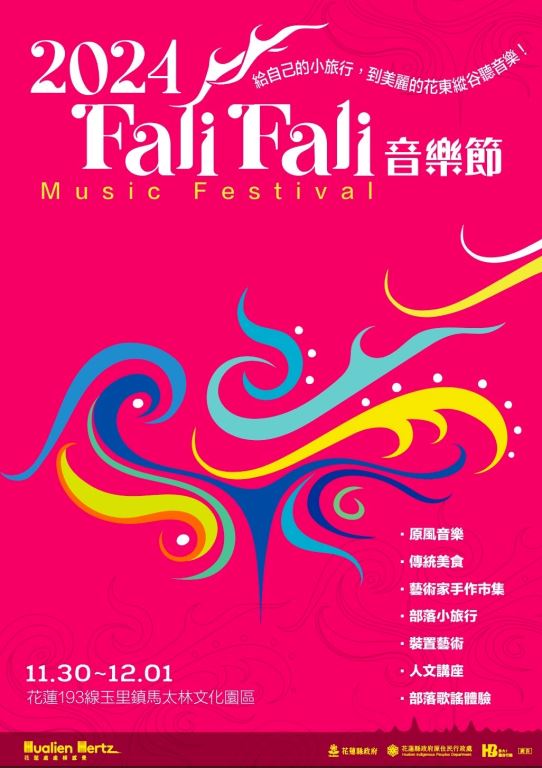 花蓮縣政府誠摯邀請全國民眾,在這個深秋時節蒞臨玉里鎮馬太林文化園區,共襄盛舉一年一度的南區文化藝術饗宴──「2024 FALI FALI 音樂節」。 本次音樂節將於11月30日至12月1日連續兩天舉行,讓參與者在中央山脈與海岸山脈環抱之中,徜徉於稻田與自然美景的懷抱,感受音樂與自然交織的無限魅力。