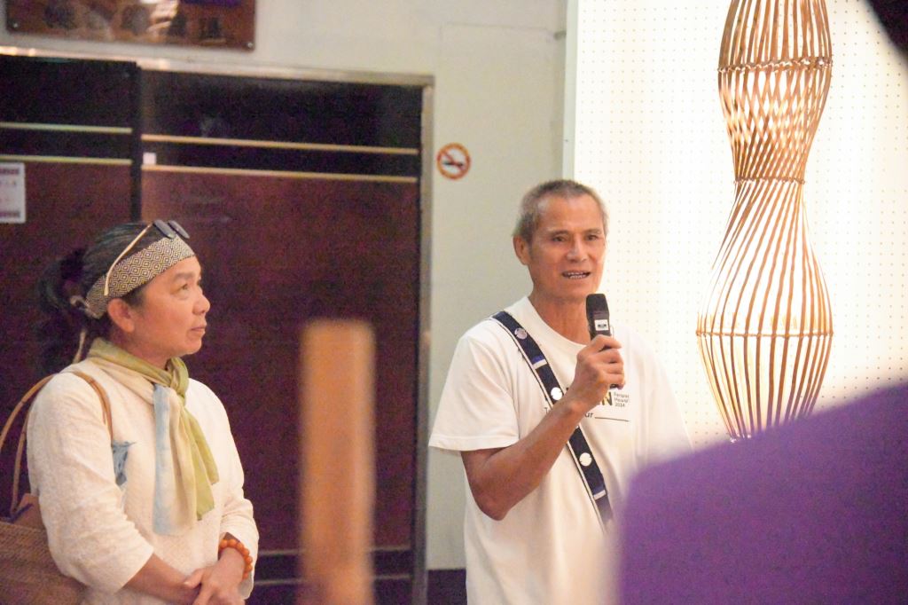 此外,纖維藝術創作者陳淑燕老師及竹藤編工藝師杜瓦克·都耀(Tuwak Tuyaw)的作品也在展覽中大放異彩,淑燕老師在臺灣南島文化推廣中扮演了重要角色,結合噶瑪蘭族杜瓦克·都耀(Tuwak Tuyaw)老師的傳統魚筌(Sanku),展現了南島文化樹皮布及竹藤編的獨特風貌。花蓮縣政府原藝百工之一陶藝家李玉英(Afo' Olaw)老師也貢獻了6件作品,讓觀眾深入理解原住民族工藝的可貴。