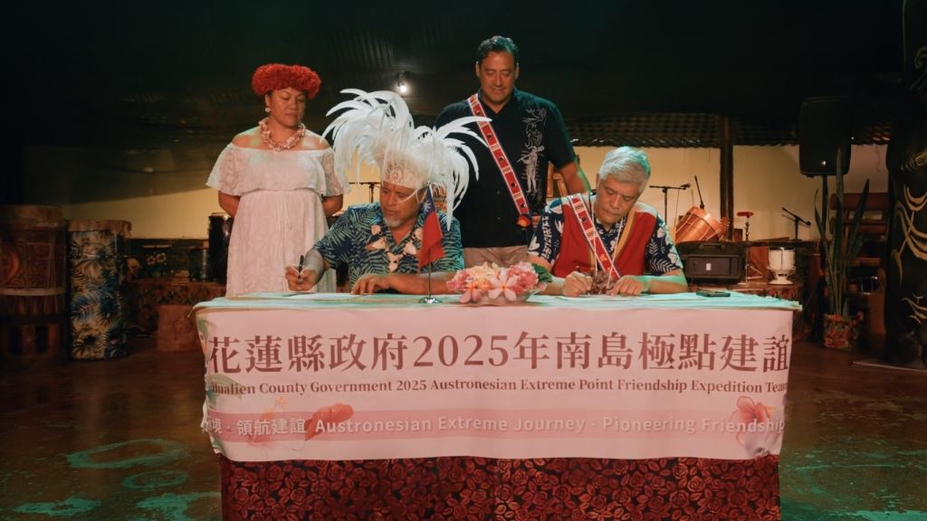 在一系列交流後,今日重頭戲:復活節島及花蓮合作MOU簽署儀式就此展開。在雙方樂舞祝福之下,花蓮縣政府原住民行政處處長馬呈豪(Malay Boya)及復活節島文化大使,在眾人的見證及祝福之下,完成了合作MOU的簽署儀式,確定將在7月份前來花蓮參與2025太平洋南島聯合豐年節,獲得了滿堂喝采。更令人感動的是,出身復活節島的智利眾議院議員Hotuiti Teao更親身參與了本場盛事,以行動支持力挺,對於日後與花蓮的情誼與合作關係有著更深且遠的期許,也讓晚宴的美食更添溫暖及真誠之情。