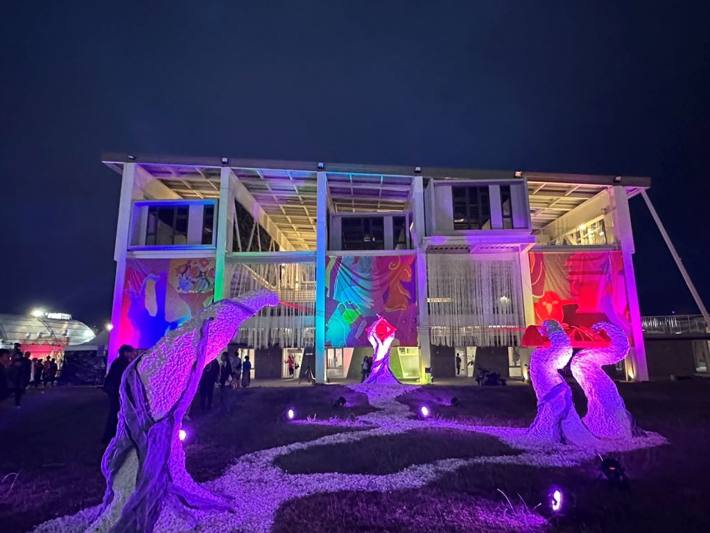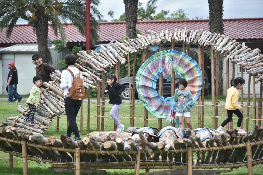 今年藝術節特別推出三座大型裝置藝術,展現出族群技藝與文化創意。胡秀蘭老師用天然竹片編織《合心》,以竹片編織出象徵族群團結的五道通道;許國華老師與LUMA’80團隊以《midiput tu niyadu’(保護部落)》,以漂流木與織品訴說信仰,傳遞出守護部落的力量;謝郁雯老師則以《織.續》則以流線造型描繪祖靈記憶的延續與文化現代轉譯。