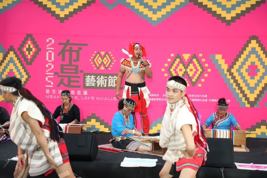 由花蓮縣政府主辦,全台唯一以原住民織藝為主題的《2025布是藝術節》,於4月26日至27日在花蓮文創旗艦館溫暖登場。活動以「布是生活,是花蓮」為主題,串聯阿美族、布農族、撒奇萊雅族、太魯閣族、噶瑪蘭族、賽德克族六大族群,以織布、裝置藝術、音樂、市集與手作體驗,交織出屬於這片土地的文化樂章。活動一開始由工藝師朱黛老師率領布農族部落青年於台上展演織布工藝,以及青年音樂人腳川大熊(Falah)結合阿勒飛斯文化藝術團,帶來動人充滿生命力的歌聲以及精湛的樂舞表演,為這場盛宴揭開序幕。