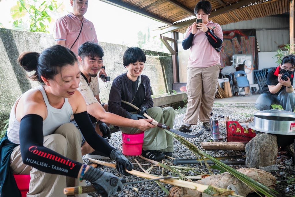 在壽豐山下部落,夥伴們走進山下基地,在INA野菜市集,認識在地野菜種類,並體驗削藤與取藤心,深刻感受部落珍惜自然、敬畏土地的生活態度。大家共同烹煮野菜湯,並與壽豐文健站長者共餐。長者以傳統歌謠迎接來自各國,溫馨氛圍中體現青銀共融的文化交流與世代對話。