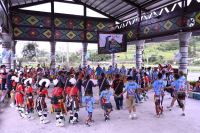 花蓮縣長徐榛蔚一到場,部落族人便高聲歡呼,大夥兒熱情夾道簇擁、熱烈鼓掌表示歡迎,徐縣長也展現一貫親民的本色和親切的笑容,逐一和部落族人握手寒暄,並以流利的族語向部落族人打招呼。