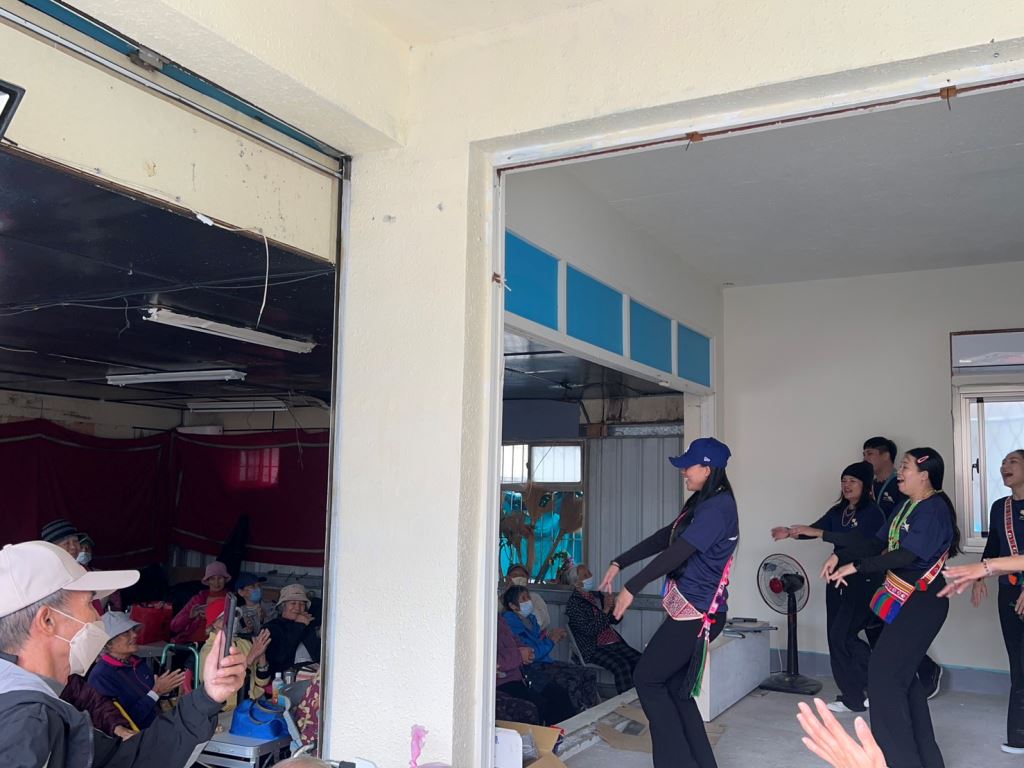 抵達馬太鞍文健站時,長者們早已面帶燦爛笑容、滿懷期待迎上前來。歌聲響起後,有些長者一邊唱一邊比著動作;也有些靜靜聆聽,眼眶因感動悄悄泛紅。其中一位阿嬤在做動作時突然停下,緊握團員的手,以顫抖卻溫暖的語氣說:「今天你們來,讓我們的心亮起來了。你們的歌,讓我們忘記心裡的眼淚。Aray kamo wawa, misawsaw to losa' no niyam(謝謝你們孩子,洗去我們的眼淚)」。這不僅是一句感謝,更像一股深深的療癒力量,讓人重新得以站穩、再度前行。