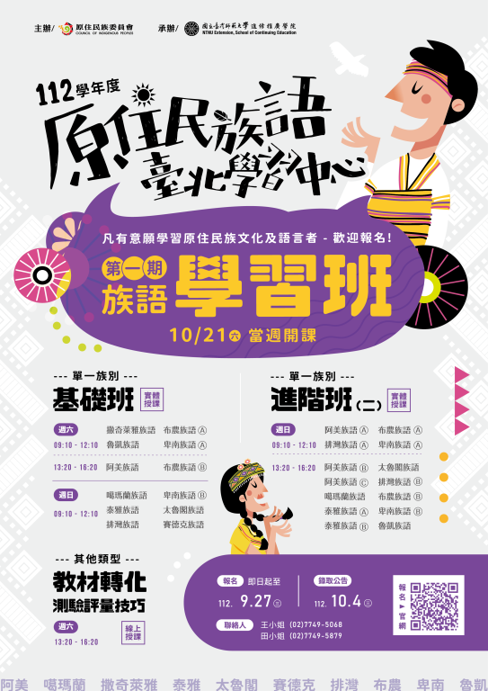 | 一、 | 為協助強化原住民族語言師資教學專業知能,期有效提升原住民族語言教學質與量,並增進族語傳承與發展之深度與廣度,於112學年度持續辦理旨揭專班。 |