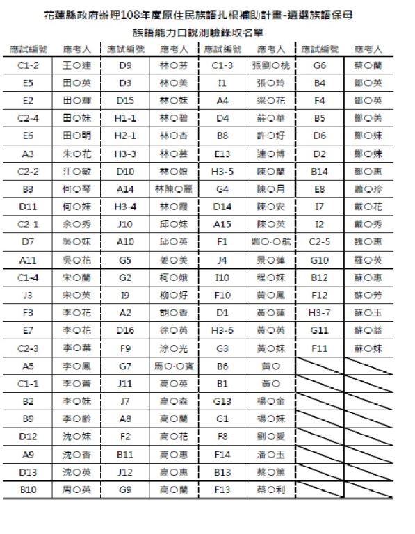 一、本次測驗採「成績達80分以上者列為錄取」,經本府統計委員評分結果,總計錄取92名,並依姓名筆劃排序,請錄取人依應試編號確認是否錄取,若無法確認,可來電洽詢(03-8234531)。