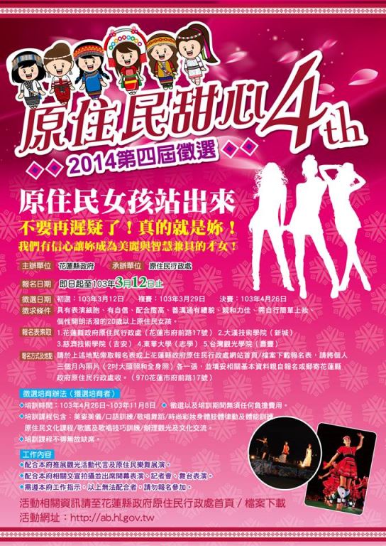 2.郵寄報名表紙本至花蓮縣政府原住民行政處,黃婉韻 小姐收。