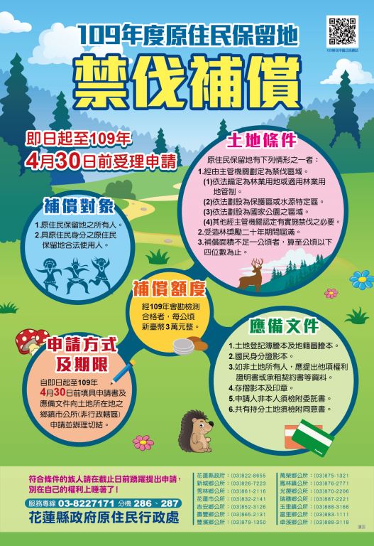 花蓮縣政府原住民行政處保留地管理科:(03)8227171轉286或287及03-8228655