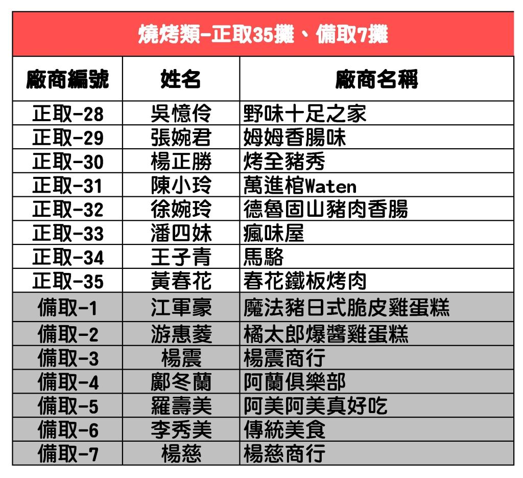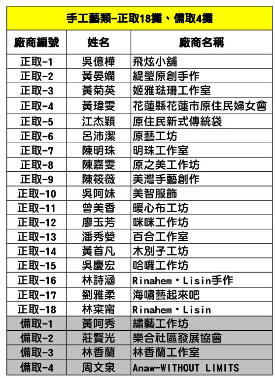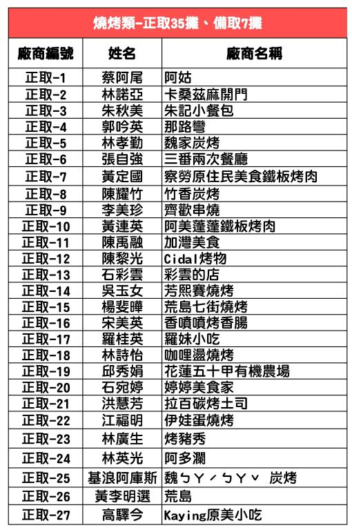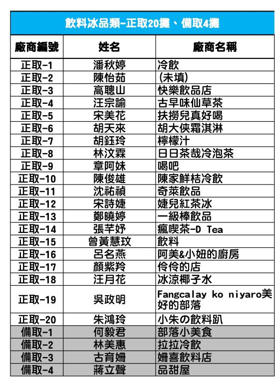 2020聯合豐年節攤位抽籤-正取及備取名單