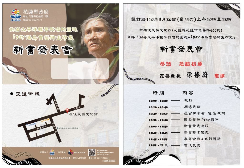 新書發表會將於3月20日上午10時於台灣原住民族文化館(花蓮縣花蓮市北興路460號)