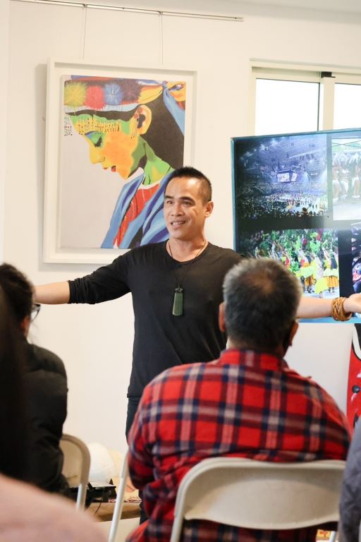 本次主講人優席夫(Yosifu)出生花蓮,為當代阿美族藝術的代表人物,致力於將原住民族文化、自然景觀與現代藝術手法相結合,展現出鮮明的族群特色。其作品屢次於國際展覽亮相,並積極推動臺灣原住民藝術與世界的交流。在講座中,優席夫利用生動影像與精采解說,帶領觀眾深入了解夏威夷藝術節的文化魅力。他介紹了各族群在音樂、工藝等領域的獨特表現,並分享這些藝術形式如何傳遞族群的歷史記憶與情感。