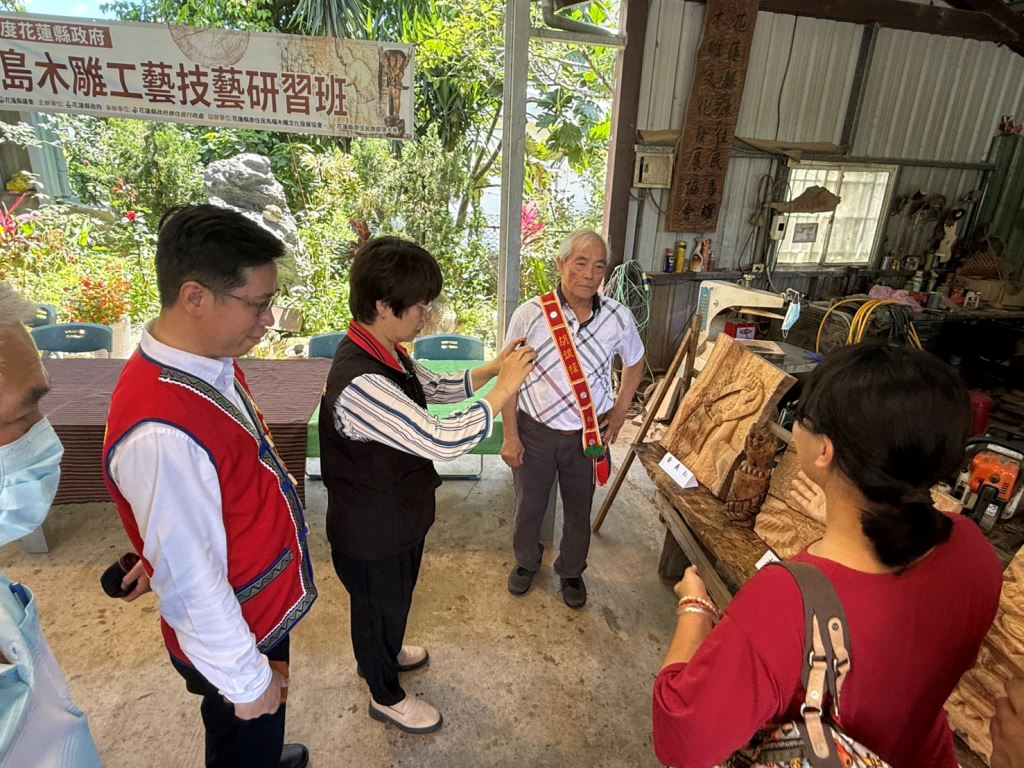 學員代表曾韶怡分享,本身是護理師,是因先生的興趣而開始學習,從零基礎到完成作品,是一次跨界又感動的體驗。她表示希望未來縣府能持續推廣此技藝,讓更多人了解原住民族木雕這項文化瑰寶。