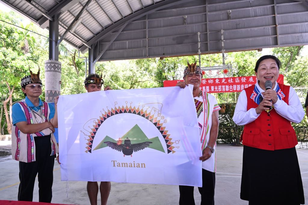 在活動現場,縣長徐榛蔚特別親手將象徵尊重與團結的部落旗幟贈予族人,表達深厚敬意與祝福,獲得現場族人熱烈掌聲,氣氛隆重而感人。這面旗幟不僅象徵著部落的身份與榮耀,更承載著族人對祖先的敬仰、對土地的守護,以及對共同歷史和文化的珍惜與凝聚。花蓮原住民族旗幟多揉合傳統圖騰與色彩,象徵族群的歷史脈絡、文化記憶與團結力,提醒族人不忘本源、堅守價值,同時鼓勵青年世代承襲並傳揚這份珍貴的文化遺產。