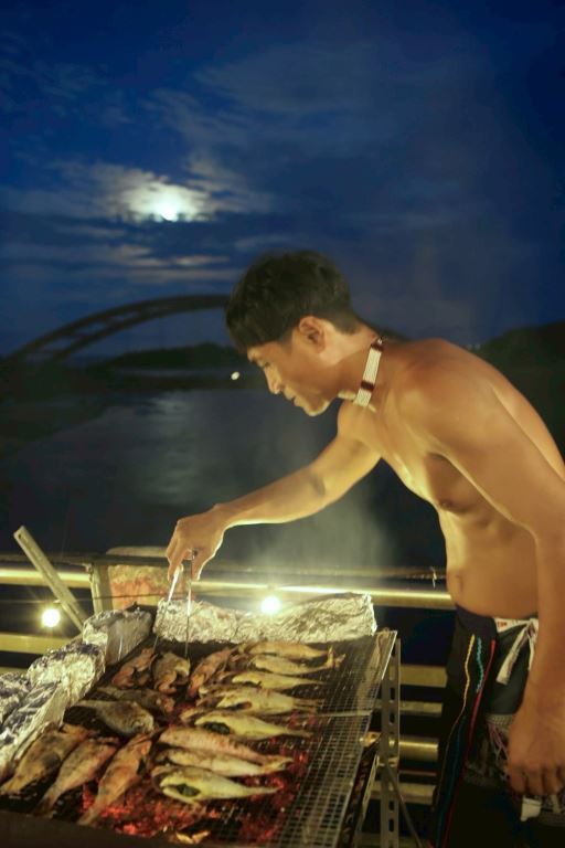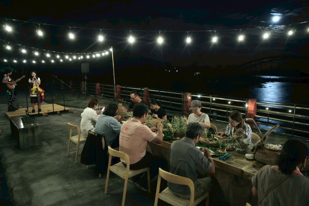 活動由里艾廚房主廚黃偉忠(Liay)領隊,從部落紋理與生活語彙切入,帶領來賓走讀靜浦聚落,認識海岸阿美族在山海交界間的生計智慧。隨後安排「竹杯手作」體驗,讓參與者親手操作竹材處理與綁紮工法,感受「做中學、學中記」的文化傳承。夜幕低垂時,隊伍轉往舊長虹橋畔,在太平洋海風與月光相伴下,享用以當季在地食材烹調的無菜單料理,並在阿美族歌謠與簡易合唱教學的陪伴中展開餐桌對話,完整展現「Good(美味)・Clean(潔淨)・Fair(公平)」的慢食精神。