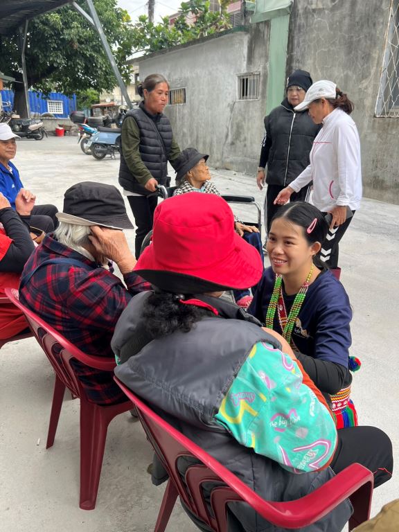 抵達馬太鞍文健站時,長者們早已面帶燦爛笑容、滿懷期待迎上前來。歌聲響起後,有些長者一邊唱一邊比著動作;也有些靜靜聆聽,眼眶因感動悄悄泛紅。其中一位阿嬤在做動作時突然停下,緊握團員的手,以顫抖卻溫暖的語氣說:「今天你們來,讓我們的心亮起來了。你們的歌,讓我們忘記心裡的眼淚。Aray kamo wawa, misawsaw to losa' no niyam(謝謝你們孩子,洗去我們的眼淚)」。這不僅是一句感謝,更像一股深深的療癒力量,讓人重新得以站穩、再度前行。