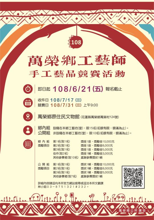 【轉知】萬榮鄉公所辦理「108年度萬榮鄉工藝師手工藝品競賽活動」