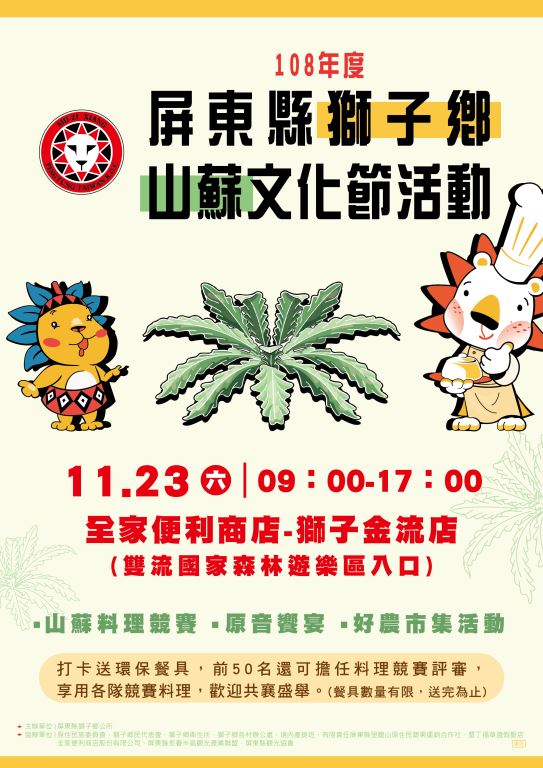 【轉知】屏東縣獅子鄉公所辦理「108年度屏東縣獅子鄉山蘇文化節活動」