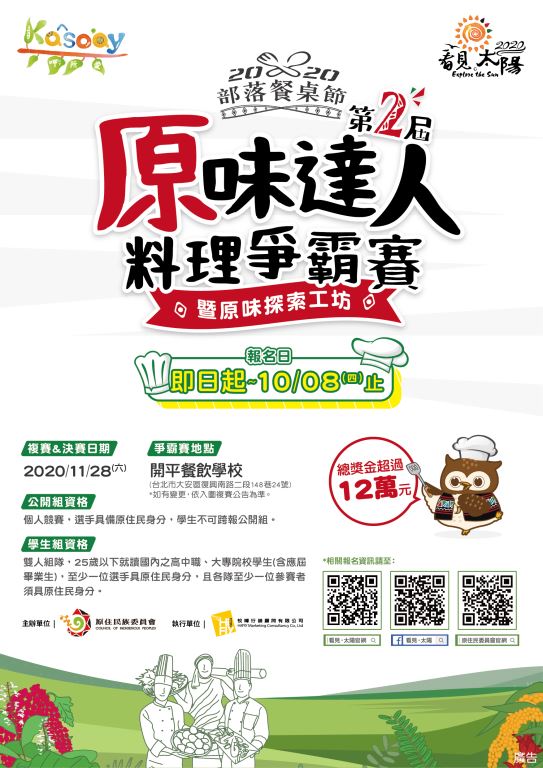 【轉知】原住民族委員會辦理20 20 年 第二 屆 原味達人 原味達人 料理爭霸 賽