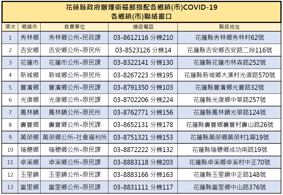 (二)、領取對象(不限本人)攜帶原住民身分證明文件(戶口名簿或戶籍謄本)至戶籍所在地之鄉鎮公所規劃指定地點領取。相關資訊歡迎致電各鄉鎮市公所承辦單位。