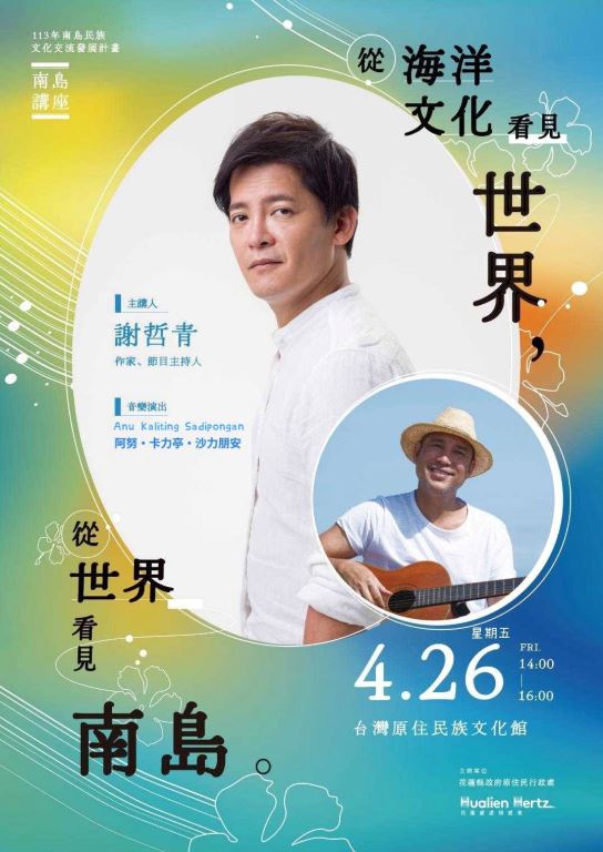 #作家、節目主持人謝哲青先生,接下來敬請期待每月都有重量級的南島領域專家親臨花蓮分享,以及許多在地歌手帶來原住民族音樂的共振頻率,溫暖你我的心。